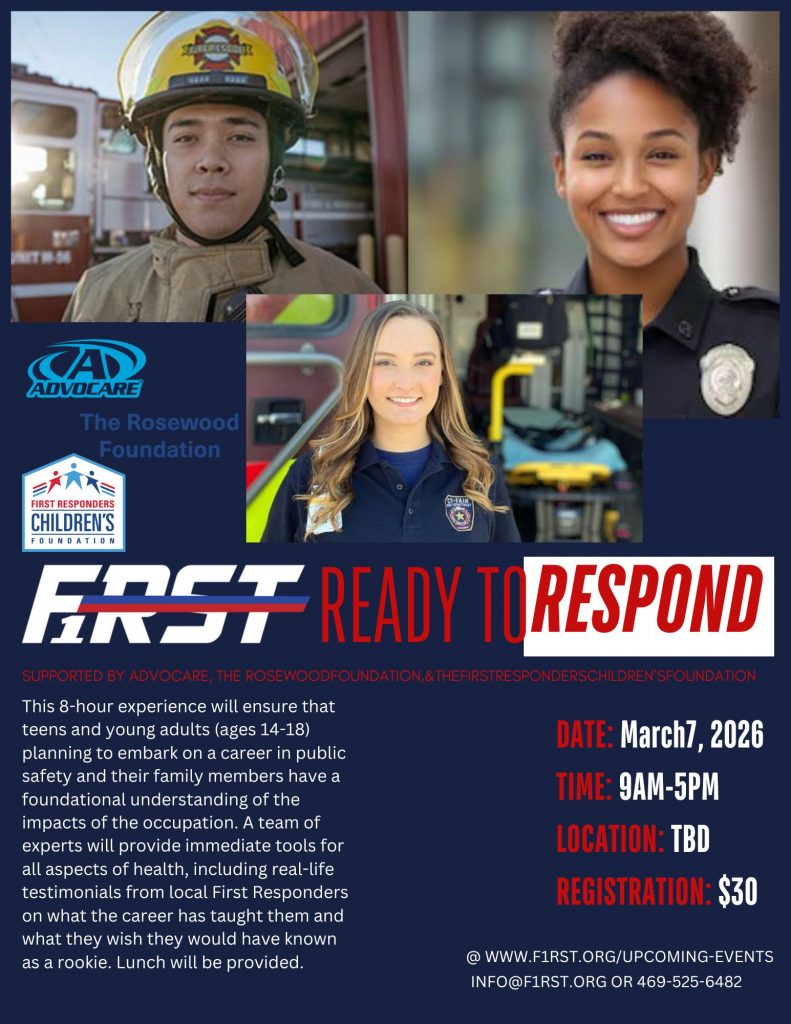 This 8-hour experience will ensure that teens and young adults (ages 14-18) planning to embark on a career in public safety and their family members have a foundational understanding of the impacts of the occupation. A team of experts will provide immediate tools for all aspects of health, including real-life testimonials from local First Responders on what the career has taught them and what they wish they would have known as a rookie. Lunch will be provided